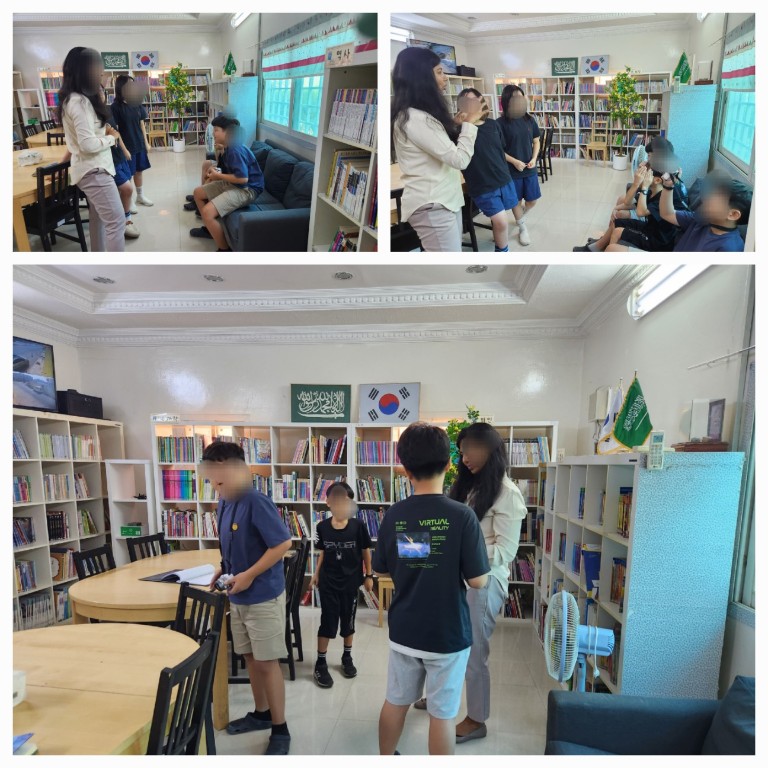 오늘 English Only Break 시간에는 어제부터 새로 오신 영어 선생님께서 4~6학년 친구들에게 학교 도서관의 영어책을 빌려서 주말에 읽도록 독려해 주셨어요. 영어 선생님께서 직접 골라주기도 하셨고 각자 원하는 영어책을 선택해서 고르기도 했어요. 주말에 고학년 친구들 모두 영어책과 함께 즐거운 주말 보내기로 해요. 눈은 세계로, 마음은 조국을! |