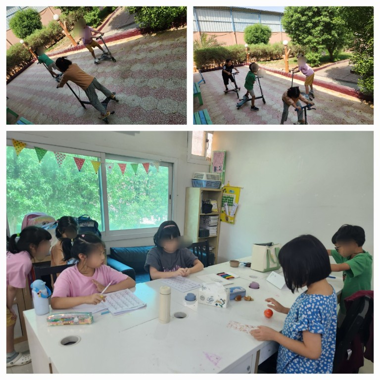 우리 학교 친구들 모두 쉬는 시간에 교사 앞 그늘진 곳에서 캐스터 보드를 타고 노는 것을 좋아합니다. 오늘도 쉬는 시간을 즐기고 있어요. 3학년 친구들이 오늘 쉬는 시간에 자발적으로(?) 수학 연산 엽습을 했습니다. 칭찬해 주세요.^^ 우리 학교 친구들에게는 쉬는 시간도 교육활동의 연장입니다. 항상 몸도 마음도 즐거운 리야드한국학교 친구들입니다. |