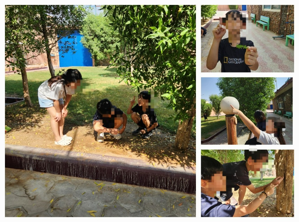 학교의 화단에서 동물들의 흔적을 찾아보았어요. 벌레들이 나뭇잎을 갉아먹은 것을 찾았어요. 개미들의 굴이 흙에도 있었고 나무에도 있었어요. 학교 화단의 가로등 위에는 새똥도 있었어요. 우리 학교 안에 동물들의 흔적이 많이 있네요. |