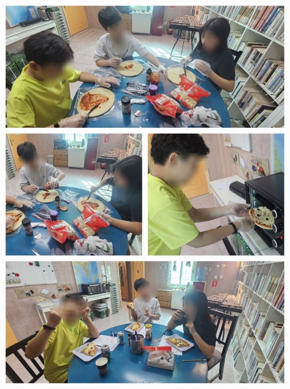 6학년 누나가 다음주면 한국으로 돌아가게 되어 영어 선생님과 함께 송별 파티를 했어요. 각자 피자를 만드는데 필요한 재료들을 조금씩 가져와서 함께 피자를 만들고 학교 선생님들과 동생들에게도 주면서 나누어 먹었어요. 선생님이 후식으로 아이스크림까지 사주셨어요. 1,2교시에 너무 잘 먹어서 점심까지 먹을 수 있을까 고민했다고 해요. ^^ |