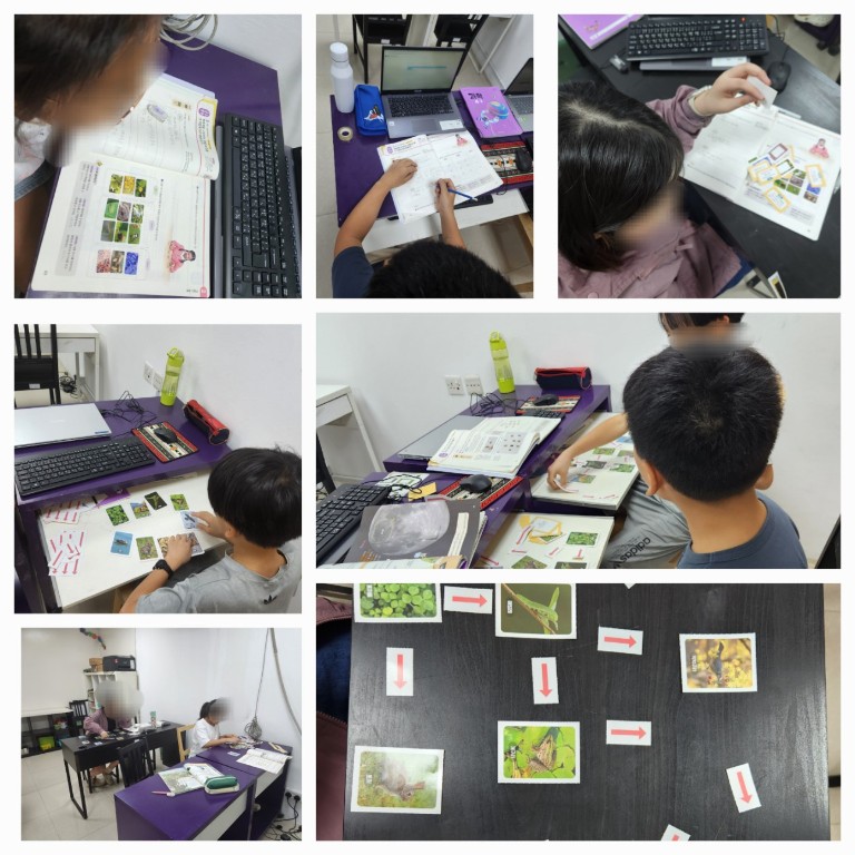 컴퓨터실에서 생태계의 생산자, 소비자, 분해자의 역할에 대해 찾아보았어요. 이후로 먹이그물을 만들며 동물들의 먹고 먹히는 관계를 만들어 보았어요. |