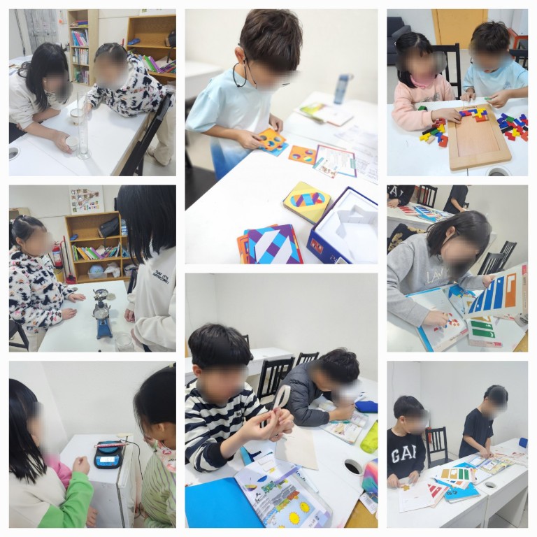 1학년은 2학기 때 배운 규칙 찾기와 관련하여 수학 보드 게임으로 같은 패턴을 만드는 레이어스를 해보았고 또 원목 테트리스로 다양한 모양 맞추기를 해보았어요.